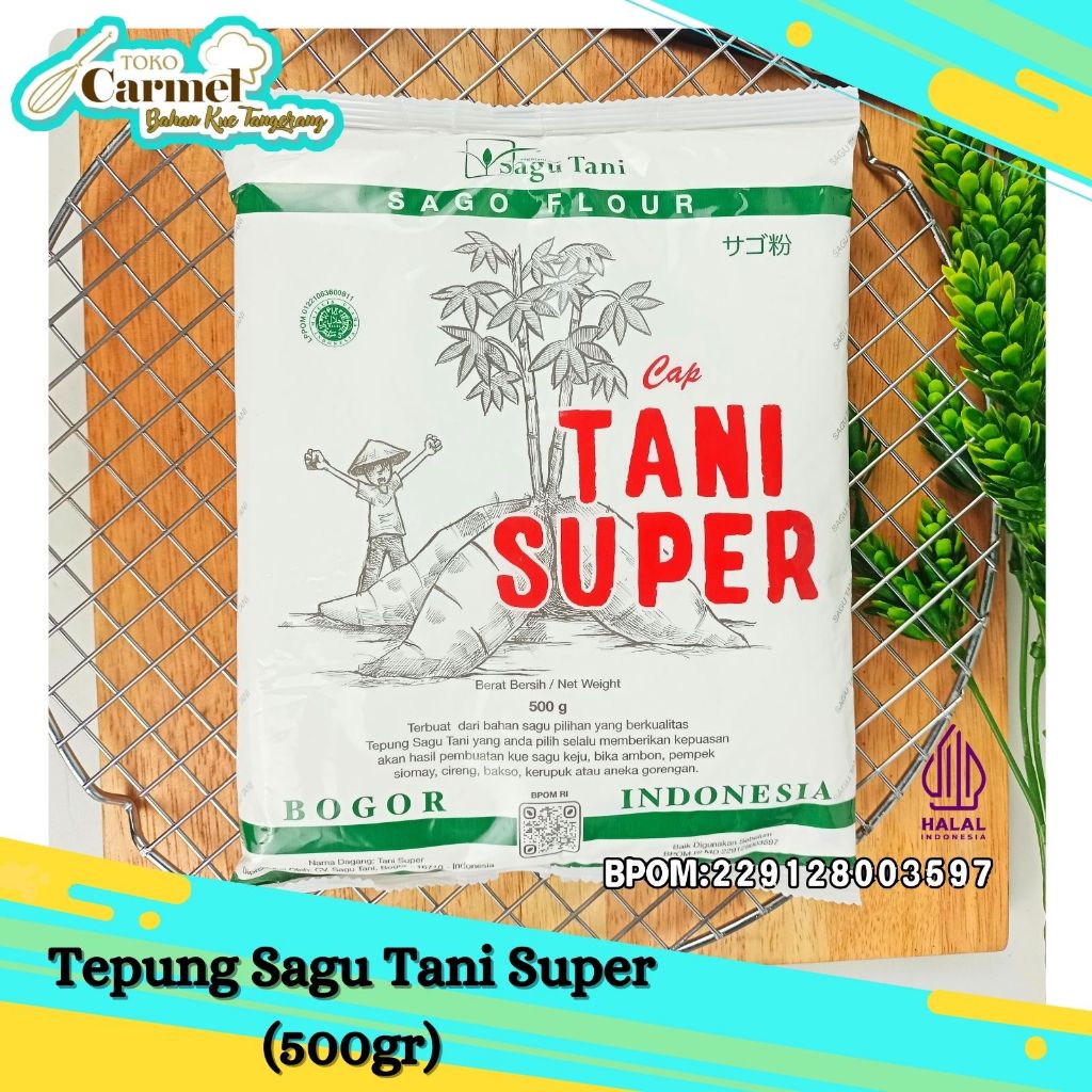 Tepung Sagu Tani Super - Super Premium Tepung yang biasa dipakai di hotel bintang lima atau koki yang menginginkan hasil olahan masakannya yg sempurna. Tepung sagu halal 100% jemur asli buatan Bogor berkualitas tinggi. Tidak ada campuran bahan pemutih, sehat dan aman dikonsumsi untuk keluarga anda. Khusus pembuatan: Kue Sagu Keju, Bika Ambon, Pempek, Boba, Siomay, Cireng, Bakso, Kerupuk atau Aneka Gorengan. Bisa juga dikonsumsi untuk penderita sakit asam lambung atau magh.